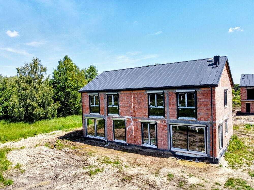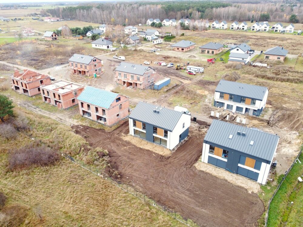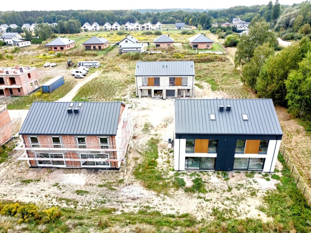 Na sprzedaż nowoczesne energooszczędne domy premium o wysokim standardzie w zabudowie bliźniaczej o powierzchni całkowitej od 176 m2 do 216 m2 (na poddaszu powierzchnia około 45 m2 według PN; po podłodze około 65 m2, np. otwarta przestrzeń bądź dwa pokoje plus łazienka), usytuowane na działkach o różnych wielkościach: od 500m2 aż do 850m2.